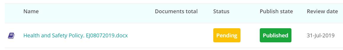 The new version of the document will now be uploaded - the document will now either be in Draft form (awaiting approval and/or ratification if these settings were selected), or it will be published and visible to all users with the relevant permission.