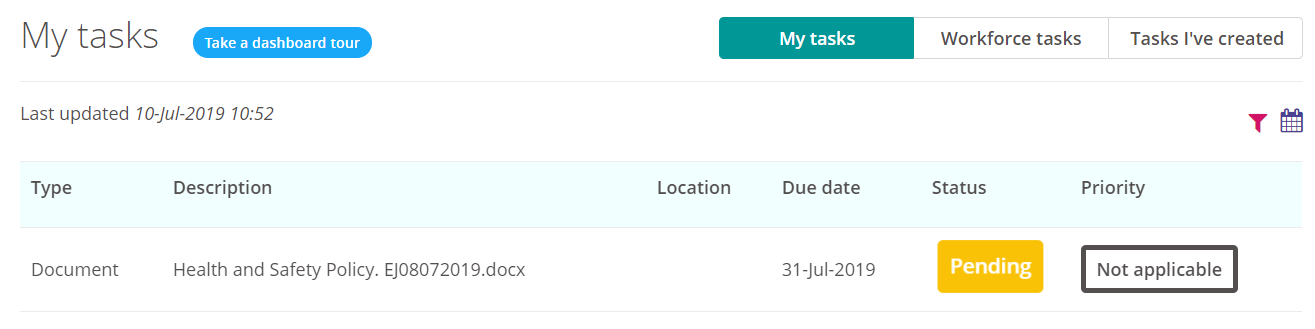 If you have been assigned as the Reviewer for a document, the document will appear on your dashboard once the pending period is reached. Click on the task from this list to be taken to the document details page.