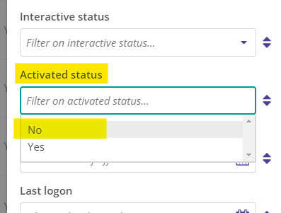 - Apply your filter and select the "Activate users" icon at the top of the Users list.