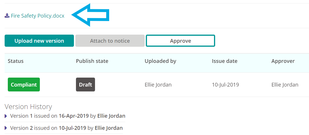 If any changes need to be made a new version uploaded, click Upload new version to replace the latest document.