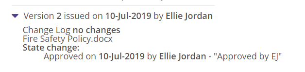 The details entered will be noted in the version history below the document.