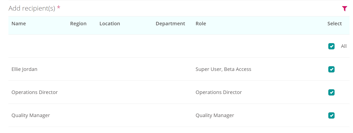 For example, you may wish to filter your users by role(s) (you can select multiple roles should you need to do so).