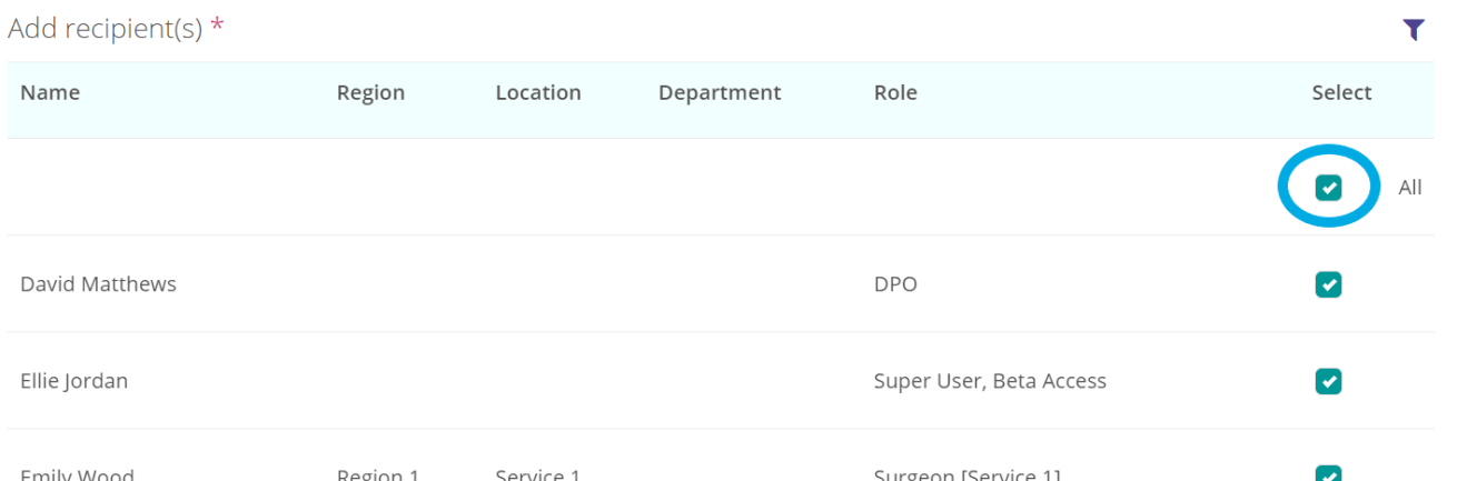 Now select who you would like the notice to be sent to. Below a preview of your notice, you will see a list of all the users in your system.