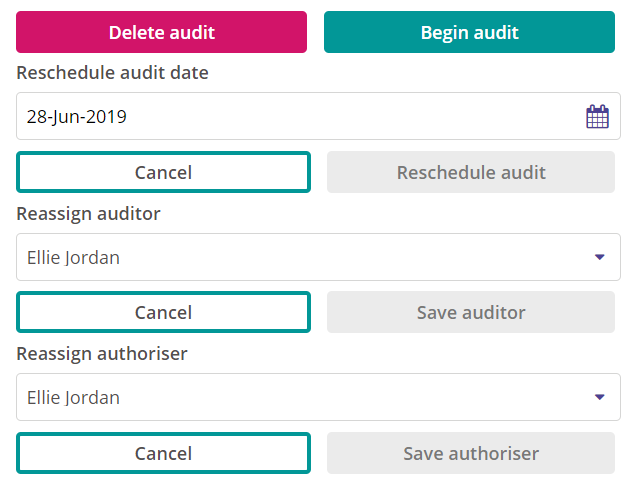 If an audit has been started, the audit cannot be deleted, instead you would abandon the audit. See Abandoning an Audit for more details.