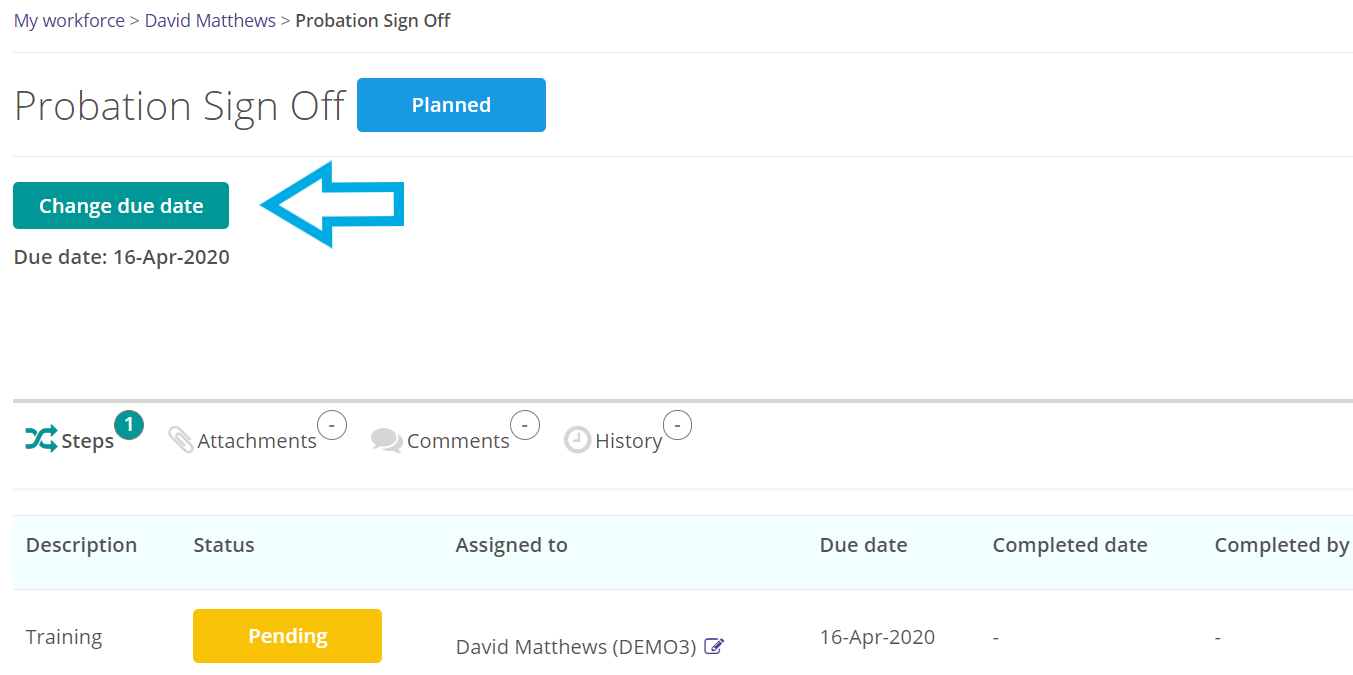 Note - altering the due date for a requirement with multiple workflow steps will update the due date for all outstanding steps in the workflow.