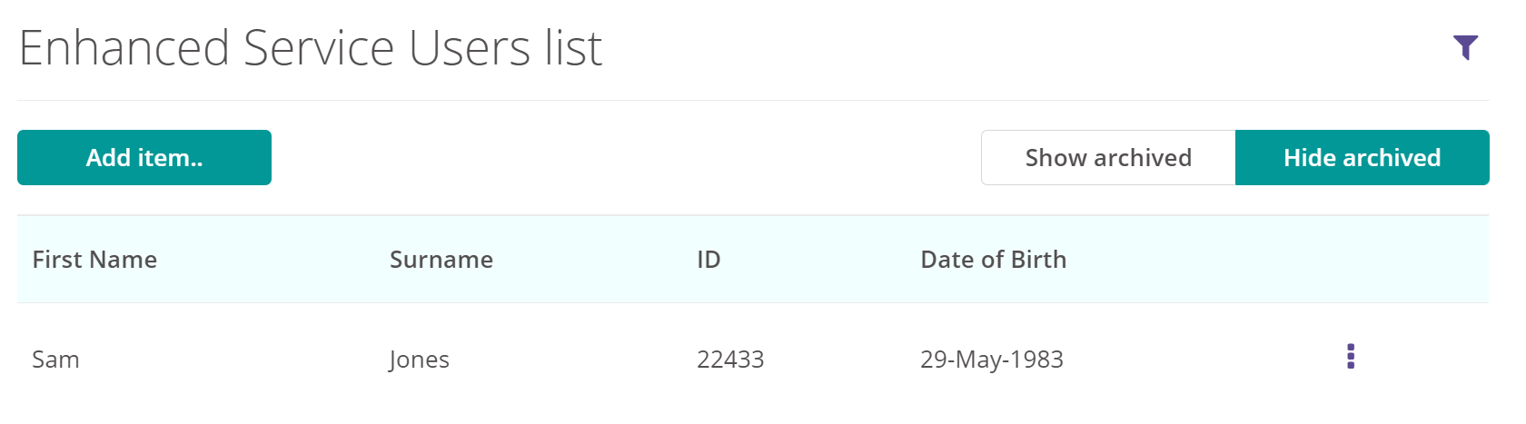 Enhanced Custom Lists allow you to create lists of data in Radar Healthcare that can be pulled through to a form. For example; a list of your Service Users or Residents.