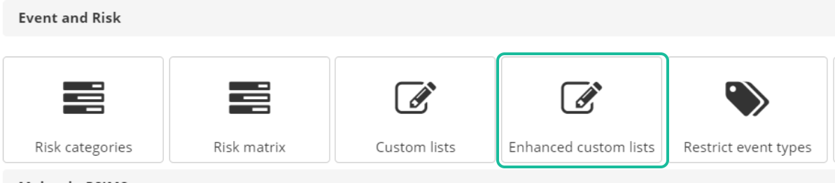 Select Enhanced Custom List from the Administration menu under Event and Risk